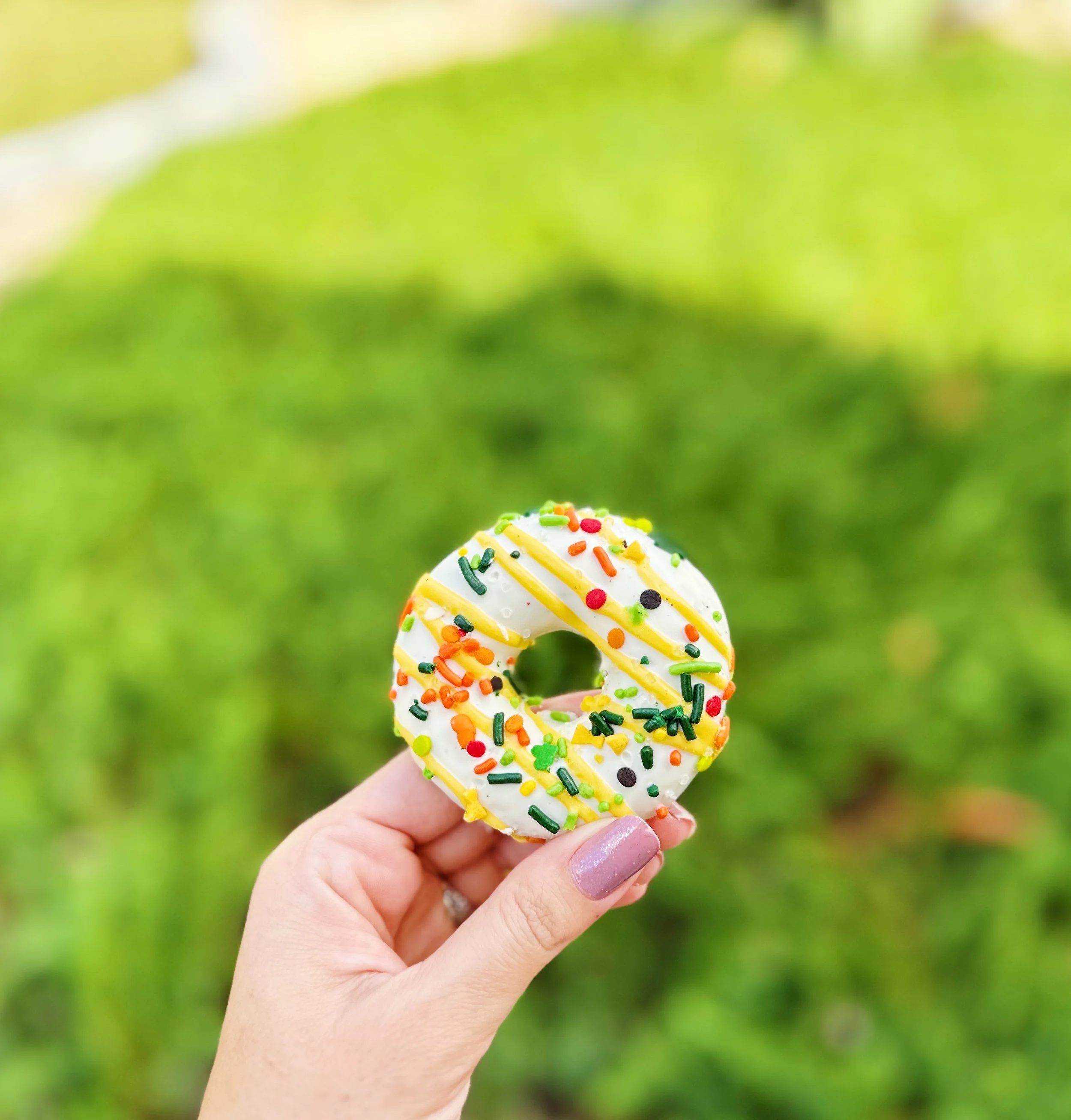 Designed for all kinds of celebrations and moments, our cookie shapes and flavors cater to the festive spirit, ensuring that your dog feels included in the holiday joy. Whether it’s a birthday, Gotcha Day, or simply a special treat, the Fall Chocolate Donut Gourmet Cookie is perfect for rewarding good behavior or indulging your furry companion.